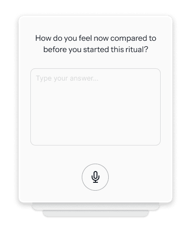 Rituo takes the effort out of self-care. Instantly launch a Guided Ritual or Speak your Journal Entry, and let the AI confirm your progress and provide personalized next steps.
